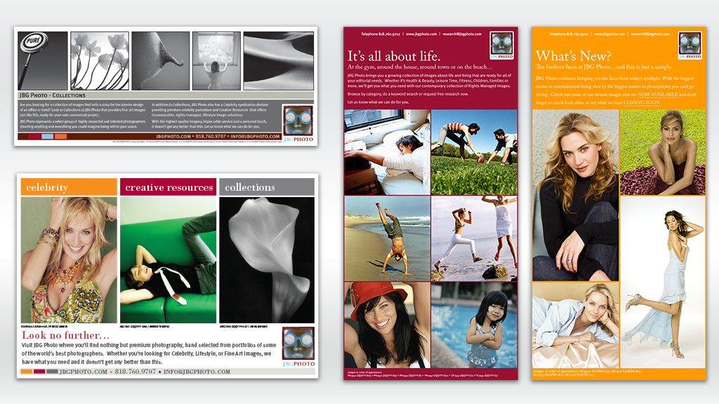 Campaign focused on illustrating JBG Photo’s specialty photography offerings: Celebrity, Creative Resources, and Collections