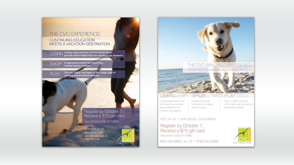 Advertisements for the CVC Continuing Education events for the veterinary medicine community