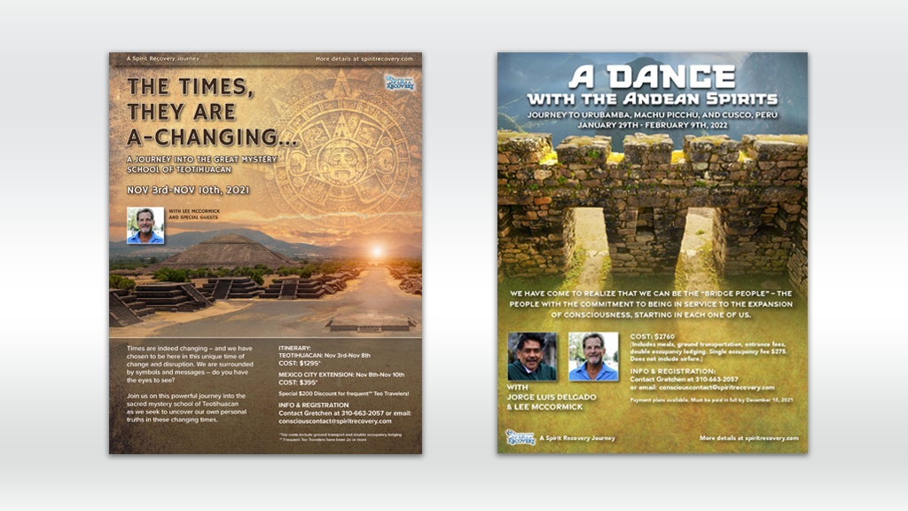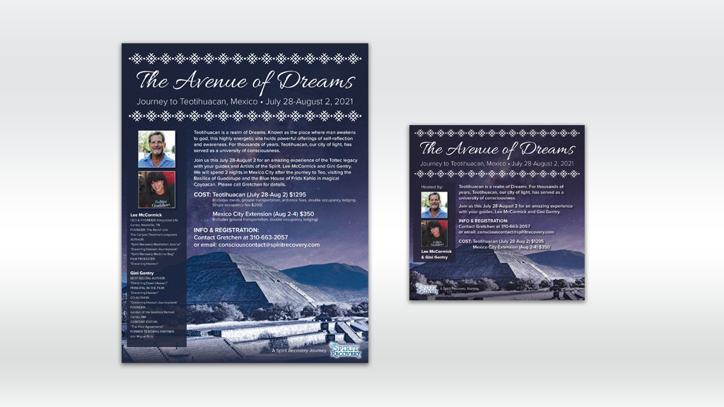 Left hand image: Full size flyer for print and website (Teotihuacan, Mexico 2021)